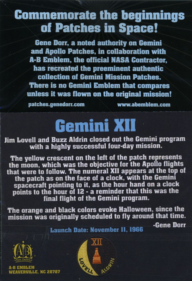 This reproduction was made by A-B Emblem in conjunction with Gene Dorr as a series of historically accurate crew patch reproductions.