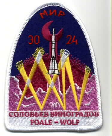 Astronaut David Wolf replaces Mir 23 astronaut Michael Foale. Cosmonauts Solovjov and Vinogradov.