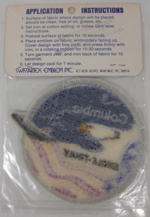 The AB Emblem STS-2 patch has a plastic coated back. This example is enclosed in a Swissartex / Kennedy Space Certer packet. This is because Swissartex who had the contract with the Kennedy Space Center, could not supply their own version of the STS-2 patch so they bought in around 1,000 patches from AB Emblem to cover the short fall. There is a rubber stamp on the back of the card header which says: EMBLEM MFG. IN USA PACKAGED BY SWISSARTEX EMBLEM INC. (Other AB Emblem patches were bought in to cover short falls during this contract between 1983 - 1988, along with patches manufactured by Cape Kennedy Medals).