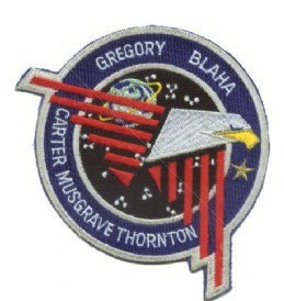 This example of the STS-33 patch is the later modern version of the Swissartex patch with a shiny 'black tinted' plastic coated backing manufactured by Eagle Crest Emblem Inc. in Taiwan.