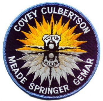 The leading edges of the shuttle's wings has a wavy or bumpy appearance in the Swissartex version of this patch.