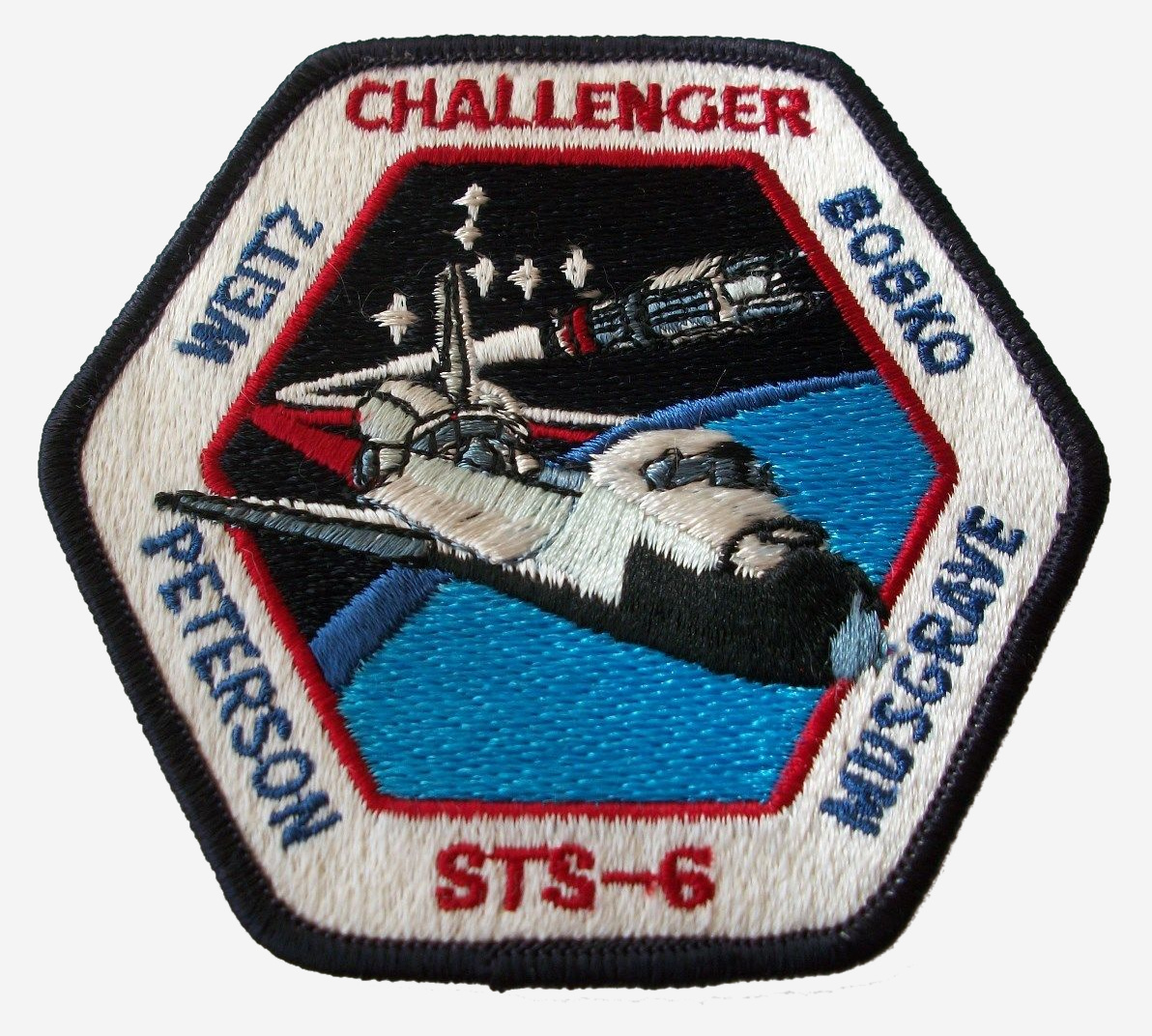 STS-6 was a NASA Space Shuttle mission conducted using Space Shuttle Challenger, carrying the first Tracking and Data Relay Satellite, TDRS-1, into orbit. Launched on 4 April 1983, STS-6 was the sixth shuttle mission and the first of the ten missions flown by Challenger. The mission took off from Kennedy Space Center's launch pad 39A, and landed at Edwards Air Force Base on 9 April. This was the first Space Shuttle mission during which a spacewalk was conducted, and the first in which the Extravehicular Mobility Unit (EMU) was used.