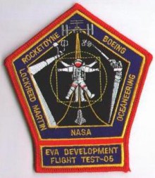 The Station is shown viewed along the direction of flight as will be seen by the Shuttle crew during their final approach and docking along the X-axis. The three ribbons and stars on the left side of the patch signify the returning Expedition Three crew. The red, white and blue order of the ribbons represents the American commander for that mission. The three ribbons and stars on the right depict the arriving Expedition Four crew. The white, blue, red order of the Expedition Four ribbon matches the color of the Russian flag and signifies that the commander of Expedition Four is a Russian cosmonaut. Each white star in the center of the patch represents the four Endeavour crew members. The names of the four astronauts who will crew Endeavour are shown along the top border of the patch. The three astronauts and three cosmonauts of the two expedition crews are shown on the chevron at the bottom of the patch.