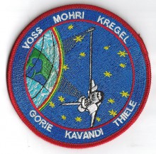 The crew patch depicts the space shuttle in orbit with the crew names trailing behind. STS-123's major additions to ISS (the ELM-PS installation with the shuttle robotic arm and the fully constructed SPDM) are both illustrated. The ISS is shown in the configuration that the STS-123 crew will encounter when they arrive.